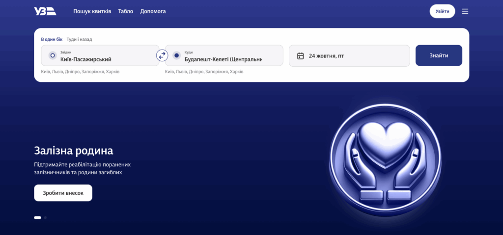 Офіційний сайт Укрзалізниці дозволяє купувати квитки на міжнародні поїзди онлайн через розділ «Квитки на потяг».