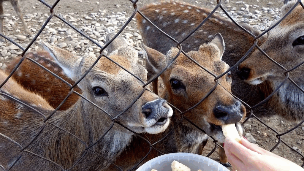 - Годування: відвідувачам дозволено годувати оленів, для чого необхідно придбати спеціальний корм (зазвичай сухарі або хліб) на вході;